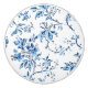 Elegant gezeichnet klassisch und gepflegt mit zartem Delft blauen Weinbergen, Blume und geschwungenen Ästen auf weißem Hintergrund.