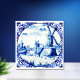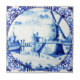Schöne, blau-weiß, handbemalt, blau, Vintag, Holland Windmühle und Brücke über ihre einzigartigen Wasserwege. Verzierte, blumengeschmückte, runde Rahmen, die in der Deluxe-Version sehr auffallend sind.