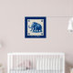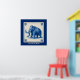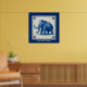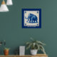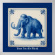Ein humorvoller, monoton, blauer Wollmammut (mammathus primigenius) im Stil einer Delft-Kachel. Passen Sie Ihren eigenen Text an.