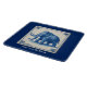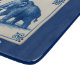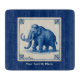 Für die eiszeitliche Küche: ein humorvoller, monoton, blauer Wollmammut (mammathus primigenius) im Stil einer Delft-Kachel. Passen Sie Ihren eigenen Text an.