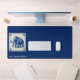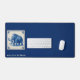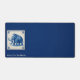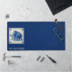 Ein humorvoller, monoton, blauer Wollmammut (mammathus primigenius) im Stil einer Delft-Kachel. Passen Sie Ihren eigenen Text an.