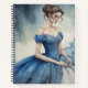 Una princesa con un vestido de baile azul profundo y bordado de plata, capturada en una acuarela delicada y suave, evoca un sentimiento de ternura y elegancia.