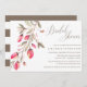 Trendy rustikale Stil Braudusche Einladungen mit einem Zweig von rosa Aquarell Blume in Blüte und weiß-grau gestreiften Muster auf den Hebeln der Karte. Diese laden zum Verweilen ein und sind ideal für ein Land, ein Bauernhaus, ein Gartenhaus, ein Party oder einen Barkeeper oder einen stilvollen Polterabend.