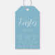 Personalisiertes Ostergeschenk-Tag mit niedlichen Bräuchen, elegante "Happy Oaster" vorne in klassisch blau und weiß, und "Hippity Hop" in klassischem Beige und Gold auf der Rückseite. Minimalistisch und elegant. Personalisiert mit Namen und kurzem Ostermotto.