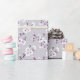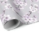 Serene and modern seamless floral pattern featuring delicate cherry blossoms in soft lavender and crisp white, scattered elegantly across a light gray background. This minimalist design evokes calm sophistication and subtle beauty, ideal for contemporary style.