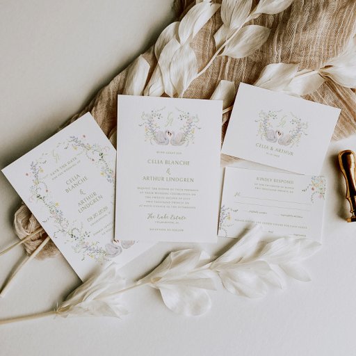 Introduce your wedding celebration with timeless elegance and artistic beauty using our Swans Floral Monogram Crest Wedding Collection. Designed for couples who appreciate the harmony of nature and fine art, it offers a captivating introduction to your special day.