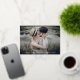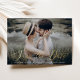 Stilvolle und elegante Save the Date-Karte mit dem Foto "Save the Date" in einem modernen Goldfolienskript. Personalisieren Sie die Goldfolie Save the Date, indem Sie Ihre Namen, das Hochzeitstermin und die Stadt/den Staat Ihres Hochzeitszentrums hinzufügen. Auf der Rückseite der Karte befindet sich ein silbergrüner Hintergrund.