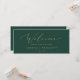 Diese zarte goldgrüne Hängekarte ist perfekt für eine moderne Hochzeit. Das romantische minimalistische Design besticht durch eine hübsche und elegante Champagner-goldgelbe Typografie auf smaragdgrünem Hintergrund mit einem klaren und schlichten Look. Die Karte druckt auf der Vorder- und Rückseite (beidseitig). Bitte Karo der Auflistung für die koordinierenden Tischnummer-Kartenkarten.