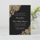 Delicate Lace Corner Black and Gold Script Wedding Einladung