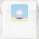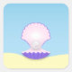 Niedliches Design, perfekt für alle, die Sommer und Muscheln Lieben. Rosa und lila Muschel mit schöner Perle, Strandlandschaft, blauer Himmel, gelbem Sand. Akzentuieren Sie Ihren Stil und Raum mit dieser wertvollen Kunst!