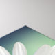Ein ruhiges Foto eines Single, der mit einer angenehmen Atmosphäre aufwartet. Weiche weiße Blütenblätter mit hellgelber Mitte. Der Hintergrund ist eine miessige grünlich blaue Farbe.