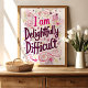 Mit diesem skurrilen "I am Delightful Schwierigt"-Kunstdruck lassen Sie sich von Ihrer einzigartigen Persönlichkeit verzaubern. Mit einem spielerischen, handgeschriebenen Schriftart und zarten Blumenakzenten feiert dieses Stück diejenigen, die es wagen, anders zu sein. Ideal, um Ihrem Schlafzimmer, Ihrem Büro oder überall eine Touch von nüchternem Charme zu verleihen, benötigen Sie eine Erinnerung Ihrer fabelhaften Komplexität.