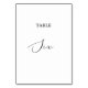 Dieser zarte schwarze Kalligrafietisch-Tisch mit sechs Tischnummern eignet sich perfekt für eine moderne Hochzeit. Das romantische minimalistische Design besticht durch eine hübsche und elegante schwarze Typografie auf weißem Hintergrund mit einem sauberen und schlichten Look. Die Karte druckt auf der Vorder- und Rückseite (beidseitig). Andere Tischnummern in der Sammlung werden separat verkauft.