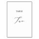 Dieser zarte schwarze Kalligraphietisch mit zwei Tischnummern eignet sich perfekt für eine moderne Hochzeit. Das romantische minimalistische Design besticht durch eine hübsche und elegante schwarze Typografie auf weißem Hintergrund mit einem sauberen und schlichten Look. Die Karte druckt auf der Vorder- und Rückseite (beidseitig). Andere Tischnummern in der Sammlung werden separat verkauft.