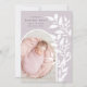 Die schicke und moderne Geburtsankündigung zeigt ein Single-Vertikal/Porträt-orientiertes Foto in einem gewölbten Layout, mit kletternden Weinreben weißer botanischer Blätter auf der rechten Seite. Personalisieren Sie die Angaben mit dem Namen, dem Geburtsdatum und den Statistiken Ihres Babys und fügen Sie eine persönliche Nachricht auf den Rücken sowie ein zusätzliches Foto hinzu.