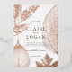 Diese delikate und elegante Hochzeitseinladung zeichnet sich durch einen weißen Hintergrund mit Blätter in Rose Goldfolie aus. Personalisieren Sie es für Ihre Bedürfnisse. In meinem Geschäft finden Sie passende Produkte.