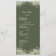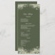 Das Delicate Floral on Olive Green Wedding Menu ist die perfekte Mischung aus Eleganz und Einfachheit für Ihren besonderen Tag. Diese Einladungen mit dem Schwerpunkt auf erschwinglichem Luxus sind mit einem charmanten Design gestaltet, das skurrile Wildblumen und zarte Blumen präsentiert und sich ideal für eine romantische Hochzeit im Landgarten eignet. Der üppige olivgrüne Hintergrund, ergänzt durch dunkle Salbei- und Smaragdakzente, verleiht dem Hotel eine zeitlose und moderne Anziehungskraft und eignet sich somit für Frühlings-, Sommer- und Herbstfeiern. Unsere Einladungen sind mit minimaler, sauberer Typografie entworfen, um Ihre Hochzeitsdetails wunderbar zu gewährleisten. Ideal für diejenigen, die günstige, aber atemberaubende Hochzeitsmenüs suchen, ist diese Kollektion das Wesentliche eines boho-Blumenmotivs und bewahrt dabei eine raffinierte Touch. Ob Sie eine intime Ansammlung planen oder eine große Feier feiern, diese Einladungen werden Ihnen den Ton für einen unvergesslichen Anlass Set geben und Ihre Gäste einladen, an der Freude Ihrer Liebe teilzunehmen.
