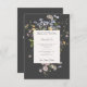 Genießen Sie Ihren besonderen Tag mit Eleganz und Anmut mit unserer beeindruckenden Hochzeitsempfangskarte in einem schönen und zarten Design. Dieses Design wurde mit viel Liebe zum Detail gestaltet und verfügt über einen weißen Textkasten, der von einem Rahmen aus bezaubernden Wildblumen in Weiß-, Blau-, Lavendel-, Rosa- und Weichgelbtönen umrahmt ist, die vor einem Hintergrund von verträumtem Holzkohleschwarz stehen. Diese exquisite Kombination schafft eine zeitlose und romantische Ästhetik, die perfekt für Paare ist, die einen Hauch von Eleganz und Einfachheit für ihre Hochzeitsfeier suchen. Lade deine Lieben ein, an deinem fröhlichen Anlass mit einem Design teilzunehmen, das das Wesen deiner Liebesgeschichte einfängt. Lassen Sie jedes Detail über Ihren besonderen Tag sprechen. Erstellt von der einfachen Farmhouse Press.
