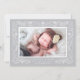Ein faszinierender botanischer Rahmen in Weich-Taube-Grau und Weiß umrahmt Ihr bevorzugtes horizontales Neugeborenes-Foto in dieser wunderschönen Geburtsankündigung für brandneue Babys. Personalisieren Sie Ihre Ankunft mit dem Namen, den Geburtsdaten und Ihren Namen unter dem Foto. Auf Wunsch ein zweites Foto auf die Rückseite hinzufügen oder das Foto entfernen, um ein Muster von grauen und weißen Streifen zu erkennen.