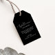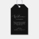 Diese zarten dunkelschwarzen kalligraphischen Begrüßungstags sind perfekt für eine moderne Hochzeit. Das romantische minimalistische Design besticht durch eine hübsche und elegante weiße Typografie auf einem dunklen Hintergrund mit einem sauberen und schlichten Look. Personalisieren Sie die Tags mit dem Ort Ihrer Hochzeit, eine kurze Begrüßung, Ihre Namen und Hochzeitsdatum. Diese Tags sind ideal für Hochzeiten in Urlaubsort und Begrüßungstaschen für Hotelgäste.