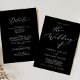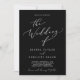 Diese zarte dunkelschwarze Kalligrafie in einer Einladung ist perfekt für eine moderne Hochzeit. Das romantische minimalistische Design besticht durch eine hübsche und elegante weiße Typografie auf schwarzem Hintergrund mit einem sauberen und schlichten Look. Rett Papier, indem man die Details auf der Rückseite der Hochzeitseinladung statt auf einer separaten Kapselkarte angibt. Geben Sie auch die UAWG-Informationen an, ob Ihr Gast elektronisch antworten wird (optional).