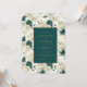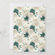 Ein elegantes botanisches Design mit einem zarten Elfenbeinmuster und aquamarinen Blume, die mit Gold und aquamarinem Blattwerk bestickt sind, bildet den Hintergrund für den goldfarbenen Text auf einem dunklen aquamarinen Rechteck. Das Blumenmuster wird auf der Rückseite der Karte wiederholt.