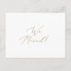 Diese zarte goldene neue Zuhause "We've Moved Move Ansage Postcard" ist der perfekte moderne Wechsel der Adresskarte. Das romantische minimalistische Design besticht durch eine hübsche und elegante Champagner-goldgelbe Typografie auf weißem Hintergrund mit einem klaren und schlichten Look.