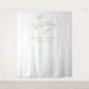 Diese zarte Goldkalligraphie Hochzeitskulisse mit Foto ist perfekt für einen modernen Hochzeitsempfang. Das romantische minimalistische Design besticht durch eine hübsche und elegante Champagner-goldgelbe Typografie auf weißem Hintergrund mit einem klaren und schlichten Look. Passen Sie die Tapisserie mit den Namen der Braut und des Bräutigams und dem Hochzeitstag an.