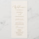 Dieses delikate Goldkalligraphie-Brautprogramm ist perfekt für eine moderne Hochzeit. Das romantische minimalistische Design besticht durch eine hübsche und elegante Champagner-goldgelbe Typografie auf Elfenbein-Creme-Hintergrund mit einem klaren und schlichten Look. Geben Sie den Namen der Braut und des Bräutigams, das Datum und den Ort der Hochzeit, Dankeschön-Nachricht, Dienstordnung, Brautparty und ein optionales "in Loving Memorial" ein.