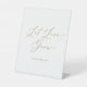 Diese delikate Goldkalligraphie lasse Liebe wachsen zu Gunsten Podestschild ist perfekt für eine moderne Hochzeit. Das romantische minimalistische Design besticht durch eine hübsche und elegante Champagner-goldgelbe Typografie auf weißem Hintergrund mit einem klaren und schlichten Look.