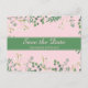 Stilvolle und elegante Save the Date Postkarte mit Blumenmotiv und einem weichen rosa Hintergrund.