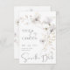 Dieses Design zeichnet sich durch ein weiches, floralfarbenes Spray aus Weiß, Grau und Imitat aus. Der Rücken setzt das Design fort und beinhaltet auch die ersten Initialen des Paares, sowie das Hochzeitstag. Dieses Design ist Teil der Delicate Modern White Gray und Gold Floral Hochzeitssuite von Karten erstellt von Simply Farmhouse Press.