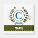 Ein zarter Efeu-Kranz mit einem blau gestreiften Bogen liegt auf einem frischen weißen Hintergrund. Das passende Hochzeitsdesign zeichnet sich durch das Monogramm "C" in blau aus. Magnet kann mit jedem Namen über dem grünen Band-Banner personalisiert werden. Design-Tipp: Verwenden Sie für den hier gezeigten Schriftart alle Caps für den Namen.