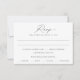 Diese romantische RSVP-Karte zeichnet sich durch ein zartes handkalligraphisches Aussehen mit modernem, minimalistischem Layout aus. Die Speisekarte auf der Vorderseite und der Platz auf der Rückseite des Hotels, in dem Sie Allergien oder Diätbeschränkungen aufzählen können, sind perfekt für eine durchdachte, stressfreie Planung.