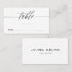 Elegante flache Platzkarte in Schwarz und Weiß mit einem zarten Kalligraphieskript. Fügen Sie Ihre Namen und das Hochzeitdatum auf der Rückseite der flachen Tischkarten hinzu.