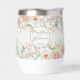 Peach Orange Coral Floral Mutter der Groom Thermal Wine Tumbler. Dieses Peach Orange Blume Arrangement strahlt die Wärme eines Sonnenuntergangs im Sommer aus und verkörpert zeitlose Brauteleganz. Weiche Pfirsich- und Orangenfarben vereinen sich in einer faszinierenden Kaskade aus Rose, Ranunkulus und Dahlien, die an Ihrem besonderen Tag Romantik und Freude hervorrufen. Personalisieren Sie Ihren Namen und Brautparty Ihrer Wahl, um dies so individuell wie Sie sind zu gestalten.