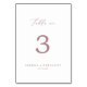 Diese delikate Rose Goldkalligraphie-Tischnummer ist perfekt für eine moderne Hochzeit. Das romantische minimalistische Design besticht durch eine hübsche und elegante, staubige Rose mit rosa Typografie auf weißem Hintergrund. Die Karte druckt auf der Vorder- und Rückseite (beidseitig). Die Artikel werden genau so gedruckt, wie sie auf dem Bildschirm erscheinen, wenn Sie sie zum Warenkorb hinzufügen, sodass Sie jede Tischnummer, die Sie benötigen, individuell anpassen und hinzufügen können.