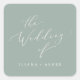 Diese zarten grünen Umschlag Aufkleber sind perfekt für eine Frühjahrs- oder Sommerhochzeit. Das romantische minimalistische Design besticht durch eine hübsche und elegante weiße Kalligraphie auf einem staubigen grünen Hintergrund mit einem sauberen und schlichten Look. Personalisieren Sie das Etikett mit den Namen der Braut und des Bräutigams.