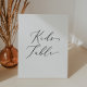Dieses zarte, schwarze kalligraphische Hochzeitskiosk-Tischschild ist perfekt für eine moderne Hochzeit. Das romantische minimalistische Design besticht durch eine hübsche und elegante schwarze Typografie auf weißem Hintergrund mit einem sauberen und schlichten Look.