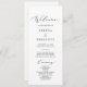 Dieses zarte, schwarze Kalligraphie-Programm und das Hochzeitsprogramm sind perfekt für eine moderne Hochzeit. Das romantische minimalistische Design besticht durch eine hübsche und elegante schwarze Typografie auf weißem Hintergrund mit einem sauberen und schlichten Look. Geben Sie den Namen der Braut und des Bräutigams, das Datum und den Ort der Hochzeit, Dankeschön-Nachricht, Dienstordnung, Hochzeitsfeier und ein optionales "in Loving Memorial" ein.