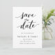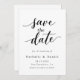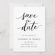 Diese elegante Schwarz-Weiß-Hochzeitskarte rette-the-date und eignet sich ideal für eine moderne Hochzeit. Das schlichte Design zeichnet sich durch elegante schwarze Kalligraphie auf einem sauberen, weißen Hintergrund aus. Die Karte enthält auch einen QR-Code für die Hochzeitswebsite auf der Rückseite.