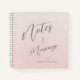 Zartes rosa Gradientenheft, mit Skripttypografie "Notizen und Musings" in Taubengrau, um Ihre kreativen Ideen und Gedanken inspirieren.. personalisiert mit Ihrem Namen auf der Vorderseite und Ihrem Monogramm mit Namen auf der Rückseite. Perfekt für die Planung und die Zeitschrift. Einfach. elegant. Stilvoll. Fügen Sie Ihre eigenen Informationen hinzu, indem Sie den Link "Diese Vorlage personalisieren" befolgen.