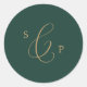Diese zarten Umschlag Aufkleber aus Gold und Grün sind perfekt für eine moderne Hochzeit. Das romantische minimalistische Design besticht durch eine hübsche und elegante Champagner-goldgelbe Typografie auf smaragdgrünem Hintergrund mit einem klaren und schlichten Look. Personalisieren Sie diese Aufkleber mit den Initialen der Braut und des Bräutigams.