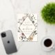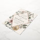 Elegante Winterblumeneinladungen mit Ihren Hochzeitsdetails in dunkelgrüner Schrift, eingebettet in einen bohobaroten, blumengeschmückten und mit Rose vergoldeten Rahmen mit Elfenbeinhintergrund. Die Blume sind in einer Farbpalette mit staubiger Rose, hellrosa, Elfenbein und sanft goldgelber Farbe gehalten, mit Eukalyptus-Blätter und Winterfolien in den Farbtönen von Salbeigrün und üppigem Waldgrün.