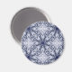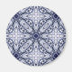 Eine wunderschön detaillierte Kaleidoskop mandala in Blau und Weiß, die einer feinen China oder Damast ähnelt. Dieses elegante Design wird auf einem Magneten gedruckt.