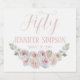 Delikates Watercolor blasses Blush rosa Textetikett. 50. Geburtstagsfeier Sparkling Wein Label mit Aquarell-Rose und dem Text "50" in einem schönen und femininen Drehbuch-Schriftart mit einer blassrosa Farbe. Passen Sie Ihren Namen und Ihr Geburtsdatum an. Passen Sie Ihre Flaschen an und fügen Sie sie hinzu. Sie werden auf den Tischen oder auf dem Kuchentisch großartig aussehen. Klassisches Label mit feminininem Look. Die Farbpalette ist sehr einfach zu bedienen, sodass sie vielseitig ist und für viele Gelegenheiten genutzt werden kann. Fügt Schönheit mit dem gleichen Thema wie die Sammlung. Einfach zu mischen und zu vergleichen. Prost!