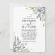 Die moderne elegante Botanische Grün-Einladungs-Karte bietet grünes Blattwerk, staubblaue Blätter, schlängelgrüne Blätter und andere wunderschöne botanische Pflanzen. Foto zurück.