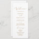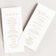 Dieses delikate Goldkalligraphie-Hochzeitsprogramm ist perfekt für eine moderne Hochzeit. Das romantische minimalistische Design besticht durch eine hübsche und elegante Champagner-goldgelbe Typografie auf weißem Hintergrund mit einem klaren und schlichten Look. Geben Sie den Namen der Braut und des Bräutigams, das Datum und den Ort der Hochzeit, Dankeschön-Nachricht, Dienstordnung, Brautparty und ein optionales "in Loving Memorial" ein.