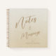 Delikates Gradientengold Notizbuch, mit Skripttypografie "Notizen und Musings", um Ihre kreativen Ideen und Gedanken inspirieren, personalisiert mit Ihrem Namen auf der Vorderseite und Ihr Monogramm mit Namen auf der Rückseite. Perfekt für die Planung und die Zeitschrift. Einfach. elegant. Stilvoll. Fügen Sie Ihre eigenen Informationen hinzu, indem Sie den Link "Diese Vorlage personalisieren" befolgen.