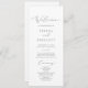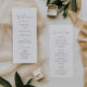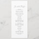 Dieses zarte, silberne Hochzeitsprogramm ist perfekt für eine moderne Hochzeit. Das romantische minimalistische Design besticht durch eine hübsche und elegante silbergraue Typografie auf weißem Hintergrund mit einem sauberen und schlichten Look. Geben Sie den Namen der Braut und des Bräutigams, das Datum und den Ort der Hochzeit, Dankeschön-Nachricht, Dienstordnung, Brautparty und ein optionales "in Loving Memorial" ein.
